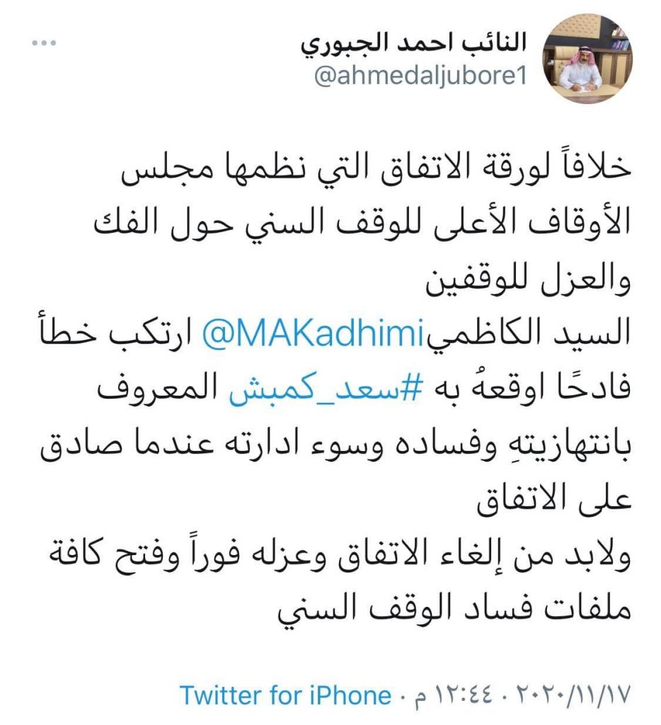 الرئيسية/اخبـار العراق/الجبوري بشأن الوقفين الشيعي والسني: الكاظمي ارتكب خطأ فادح اوقعه به سعد كمبش اخبـار العراق أخر الأخبار الجبوري بشأن الوقفين الشيعي والسني: الكاظمي ارتكب خطأ فادح اوقعه به سعد كمبش 2020-11-17 364 2020-11-17 364 شاركها فيسبوك X لينكدإن Tumblr بينتيريست Reddit VKontakte Odnoklassniki Pocket مشاركة عبر البريد طباعة