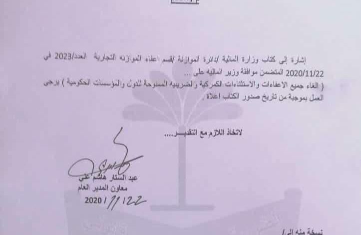 الرئيسية/اخبـار العراق/بالوثيقة.. المالية تلغي جميع الاعفاءات الضريبية الممنوحة للدول والمؤسسات الحكومية اخبـار العراق بالوثيقة.. المالية تلغي جميع الاعفاءات الضريبية الممنوحة للدول والمؤسسات الحكومية 2020-11-22 311 2020-11-22 311 شاركها فيسبوك X لينكدإن Tumblr بينتيريست Reddit VKontakte Odnoklassniki Pocket مشاركة عبر البريد طباعة