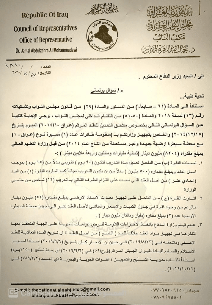 الرئيسية/اخبـار العراق/بالوثائق.. المحمداوي يوجه سؤالا برلمانيا بشأن عقود الطائرات المسيرة الخاصة بوزارة الدفاع اخبـار العراق أخر الأخبار بالوثائق.. المحمداوي يوجه سؤالا برلمانيا بشأن عقود الطائرات المسيرة الخاصة بوزارة الدفاع 2020-12-27 543 2020-12-27 543 شاركها فيسبوك X لينكدإن Tumblr بينتيريست Reddit VKontakte Odnoklassniki Pocket مشاركة عبر البريد طباعة