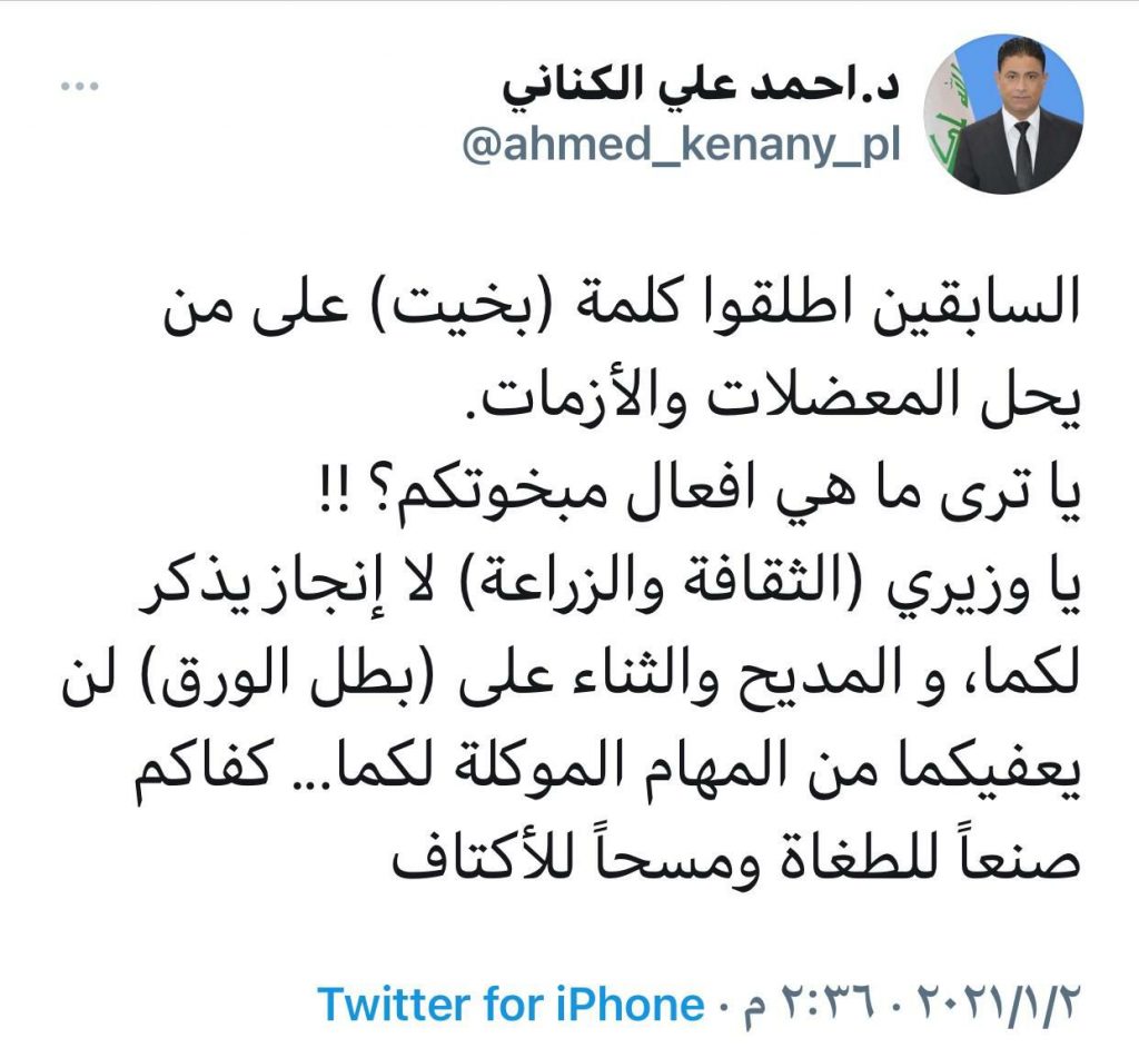الرئيسية/اخبـار العراق/حكومة “المبخوت” تثير جدلا ورسالة نيابية لوزيري الثقافة والزراعة: كفاكم صنعا للطغاة اخبـار العراق أخر الأخبار حكومة “المبخوت” تثير جدلا ورسالة نيابية لوزيري الثقافة والزراعة: كفاكم صنعا للطغاة 2021-01-02 2٬657 2021-01-02 2٬657 شاركها فيسبوك X لينكدإن Tumblr بينتيريست Reddit VKontakte Odnoklassniki Pocket مشاركة عبر البريد طباعة