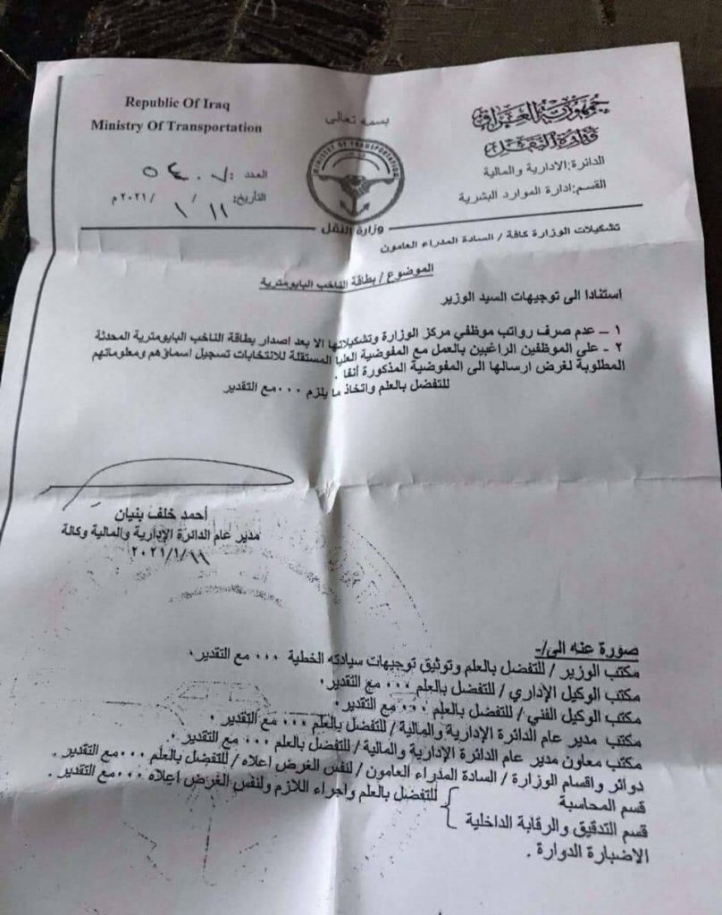 الرئيسية/اخبـار العراق/وزارة عراقية توجه بعدم صرف رواتب موظفيها الا بعد تحديث البطاقة الانتخابية اخبـار العراق أخر الأخبار وزارة عراقية توجه بعدم صرف رواتب موظفيها الا بعد تحديث البطاقة الانتخابية 2021-01-13 1٬282 2021-01-13 1٬282 شاركها فيسبوك X لينكدإن Tumblr بينتيريست Reddit VKontakte Odnoklassniki Pocket مشاركة عبر البريد طباعة