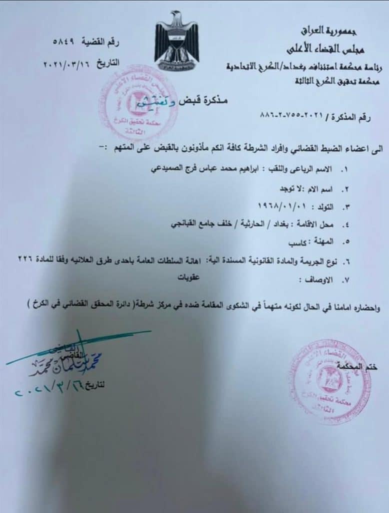 الرئيسية/اخبـار العراق/بالوثيقة.. مذكرة القبض الصادرة بحق الصميدعي اخبـار العراق أخر الأخبار بالوثيقة.. مذكرة القبض الصادرة بحق الصميدعي 2021-03-20 814 2021-03-20 814 شاركها فيسبوك X لينكدإن Tumblr بينتيريست Reddit VKontakte Odnoklassniki Pocket مشاركة عبر البريد طباعة