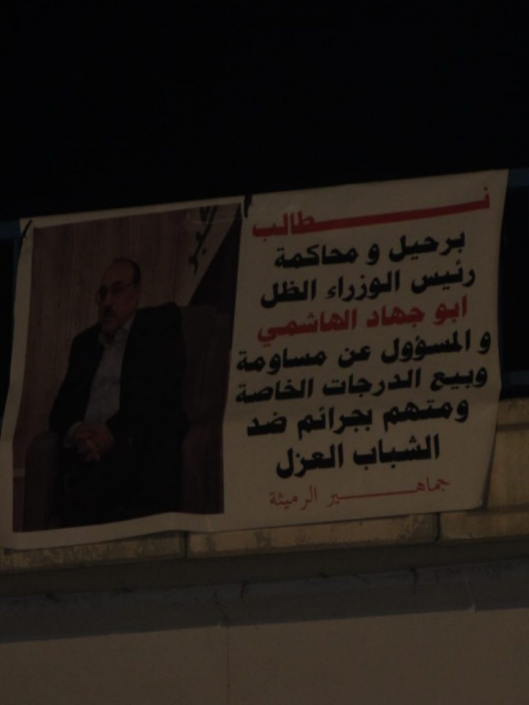 حصلت وكالة “أحداث الوطن” اليوم الأربعاء، على صور تتضمن مطالبات من قبل المتظاهرين فيها مطالبات بمحاكمة ابو جهاد الهاشمي مدير مكتب عادل عبد المهدي رئيس الوزراء العراقي بتهمة جرائم قتل ضد الشباب العزل.