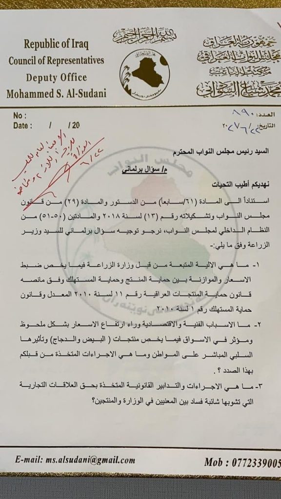 الرئيسية/اخبـار العراق/بالوثيقة.. 6 أسئلة نيابية الى وزير الزراعة بشأن غلاء الاسعار اخبـار العراق أخر الأخبار بالوثيقة.. 6 أسئلة نيابية الى وزير الزراعة بشأن غلاء الاسعار 2021-06-23 1٬536 2021-06-23 1٬536 شاركها فيسبوك X لينكدإن Tumblr بينتيريست Reddit VKontakte Odnoklassniki Pocket مشاركة عبر البريد طباعة