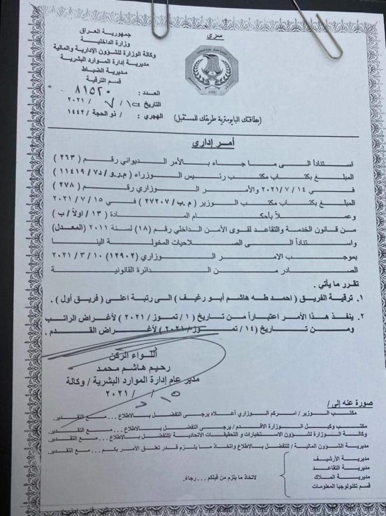 الرئيسية/اخبـار العراق/بالوثيقة.. الأمر الإداري الخاص بترقية الفريق ابو رغيف إلى رتبة أعلى ( فريق أول). اخبـار العراق أخر الأخبار بالوثيقة.. الأمر الإداري الخاص بترقية الفريق ابو رغيف إلى رتبة أعلى ( فريق أول). 2021-07-15 953 2021-07-15 953 شاركها فيسبوك X لينكدإن Tumblr بينتيريست Reddit VKontakte Odnoklassniki Pocket مشاركة عبر البريد طباعة