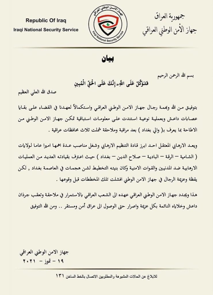 الرئيسية/اخبـار العراق/بالوثيقة.. الامن الوطني يعلن القبض على والي بغداد بتنظيم داعش الارهابي اخبـار العراق أخر الأخبار بالوثيقة.. الامن الوطني يعلن القبض على والي بغداد بتنظيم داعش الارهابي 2021-07-19 246 2021-07-19 246 شاركها فيسبوك X لينكدإن Tumblr بينتيريست Reddit VKontakte Odnoklassniki Pocket مشاركة عبر البريد طباعة