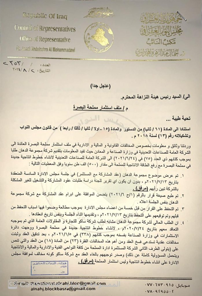 الرئيسية/اخبـار العراق/بالوثائق.. الكشف عن مخالفات قانونية وإدارية بملف استثمار مملحة البصرة اخبـار العراق أخر الأخبار بالوثائق.. الكشف عن مخالفات قانونية وإدارية بملف استثمار مملحة البصرة 2021-08-03 1٬834 2021-08-03 1٬834 شاركها فيسبوك X لينكدإن Tumblr بينتيريست Reddit VKontakte Odnoklassniki Pocket مشاركة عبر البريد طباعة