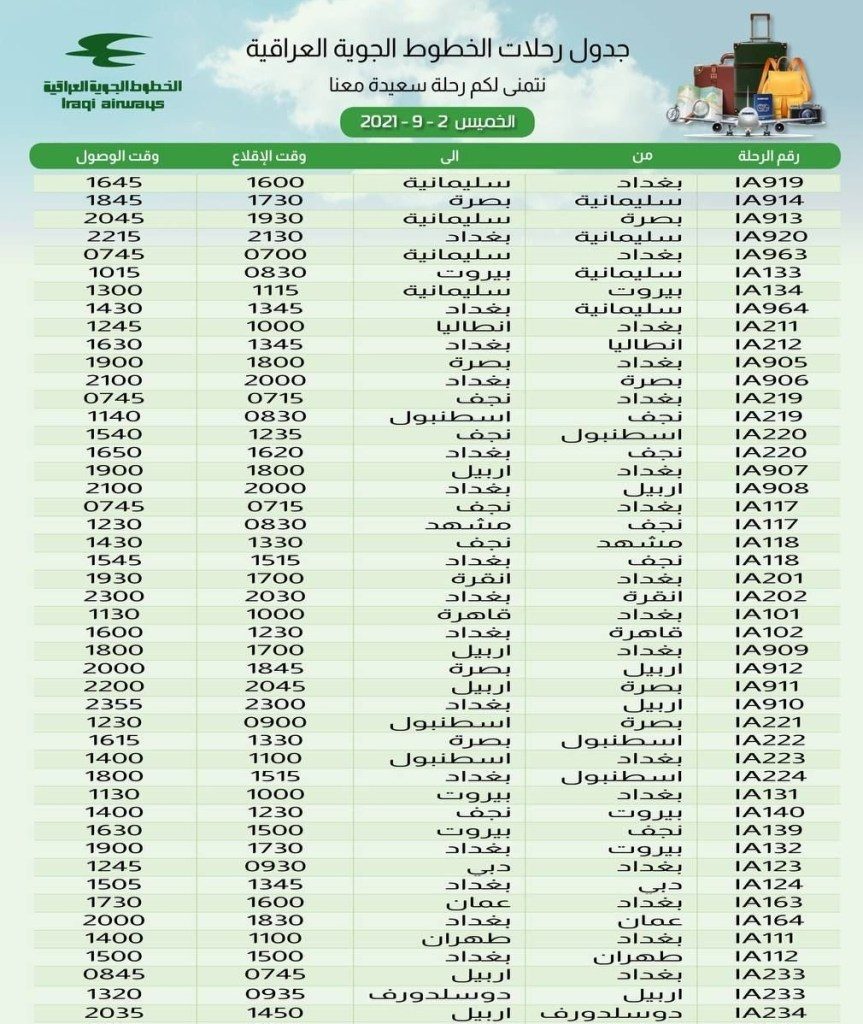 الرئيسية/اخبـار العراق/جدول رحلات الخطوط الجوية العراقية ليوم غد الخميس اخبـار العراق أخر الأخبار جدول رحلات الخطوط الجوية العراقية ليوم غد الخميس 2021-09-01 782 2021-09-01 782 شاركها فيسبوك X لينكدإن Tumblr بينتيريست Reddit VKontakte Odnoklassniki Pocket مشاركة عبر البريد طباعة