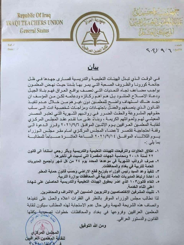 الرئيسية/اخبـار العراق/بالوثيقة.. نقابة المعلمين تنظم وقفة إحتجاجية أمام مجلس الوزراء اخبـار العراق بالوثيقة.. نقابة المعلمين تنظم وقفة إحتجاجية أمام مجلس الوزراء 2021-09-07 323 2021-09-07 323 شاركها فيسبوك X لينكدإن Tumblr بينتيريست Reddit VKontakte Odnoklassniki Pocket مشاركة عبر البريد طباعة