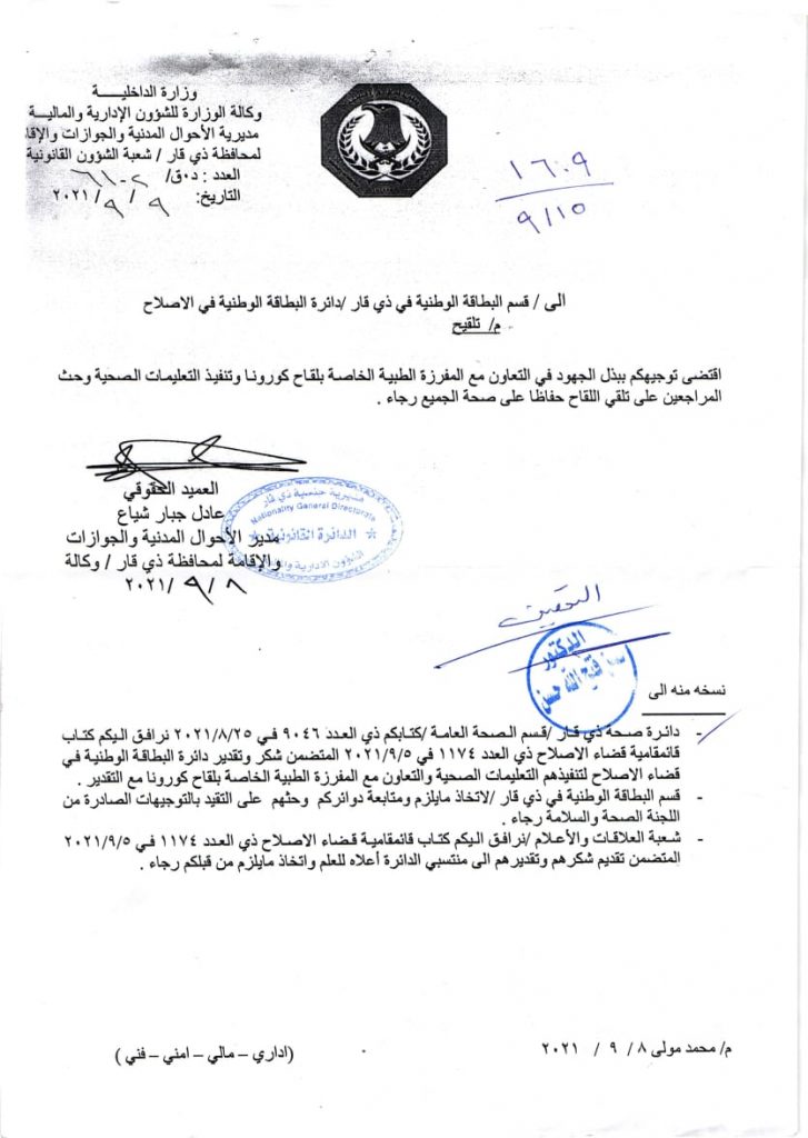 الرئيسية/اخبـار العراق/بالوثائق.. ذي قار تلزم مراجعيها ببطاقة التلقيح اخبـار العراق أخر الأخبار بالوثائق.. ذي قار تلزم مراجعيها ببطاقة التلقيح 2021-09-16 2٬241 2021-09-16 2٬241 شاركها فيسبوك X لينكدإن Tumblr بينتيريست Reddit VKontakte Odnoklassniki Pocket مشاركة عبر البريد طباعة