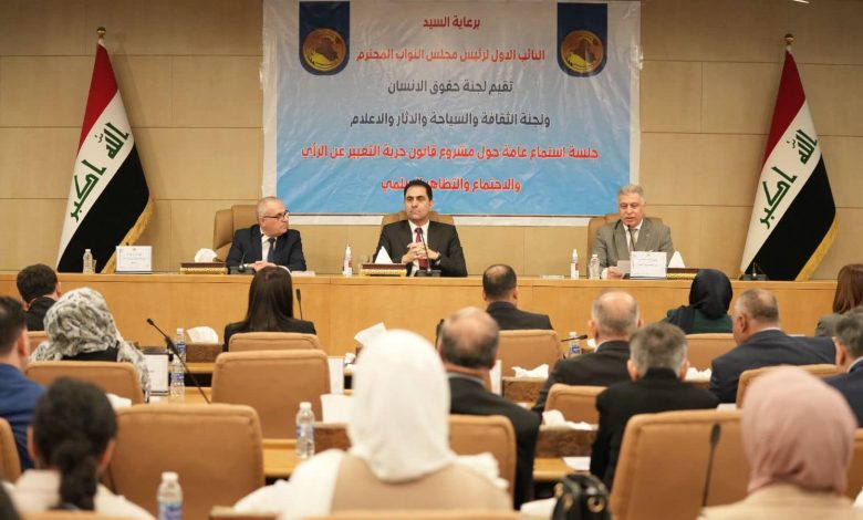 وذكر مكتب المندلاوي في بيان، أن “النائب الأول لرئيس مجلس النواب، ترأس اليوم، جلسة استماع عامة لبحث مشروع قانون (حرية التعبير عن الرأي والاجتماع والتظاهر السلمي)، أقامتها لجنة حقوق الإنسان، ولجنة الثقافة والسياحة والاثار والإعلام النيابيتان، وحضرها عددٌ من المستشارين الحكوميين، ورئيس شبكة الإعلام، وقضاة، ونقيب الصحفيين، ونقيب المحامين وباحثون ورؤساء منظمات مجتمع مدني، وممثلو وزارات”.