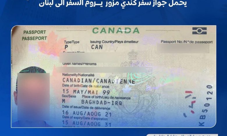وذكر بيان لقسم العلاقات والاعلام تلقته “احداث الوطن”، أن “قسم جوازات مطار بغداد الدولي القى القبض على مسافر عراقي يحمل جواز سفر كندي مزور”.