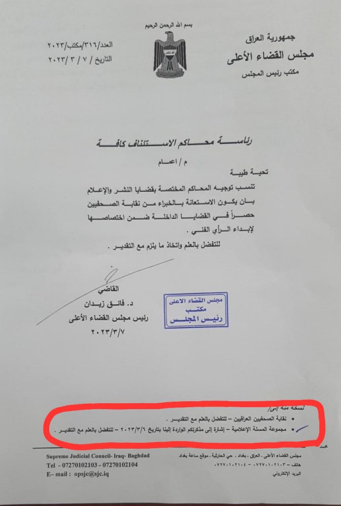 الرئيسية/اخبـار العراق/بالوثيقة.. القضاء يصدر توجيهاً يخص قضايا النشر والإعلام اخبـار العراق أخر الأخبار بالوثيقة.. القضاء يصدر توجيهاً يخص قضايا النشر والإعلام 2023-03-08 833 2023-03-08 833 شاركها فيسبوك X لينكدإن Tumblr بينتيريست Reddit VKontakte Odnoklassniki Pocket مشاركة عبر البريد طباعة
