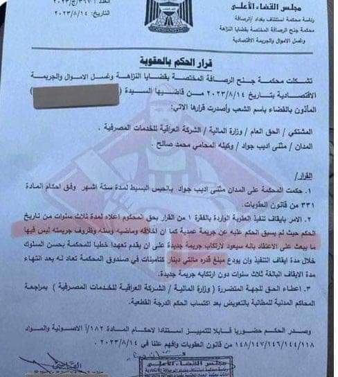 اصدرت محكمة استئناف الرصافة اليوم الثلاثاء، الحكم على مثنى السامرائي بستة اشهر مع ايقاف التنفيذ