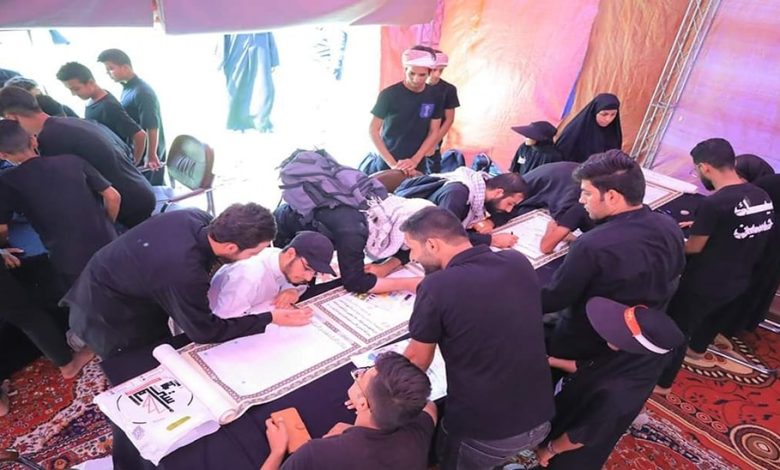 من نشاطات الاربعينية … العتبة الحسينية ترعى مبادرة خط أطول مصحف بأيدي الزائرين