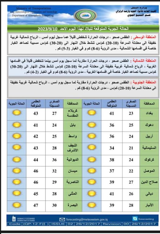 طقس العراق .. أمطار وانخفاض طفيف في درجات الحرارة
