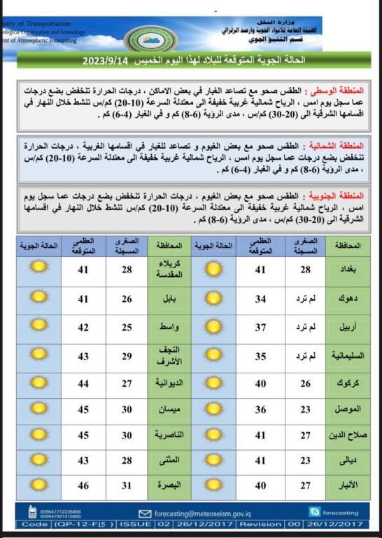 طقس العراق .. أنخفاض درجات الحرارة و تصاعد الغبار في اغلب المناطق