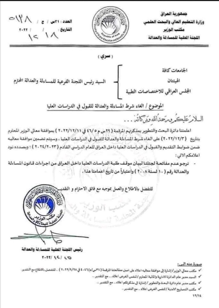 وزير التعليم يستثني المشمولين بقانون المسائلة والعدالة في اكمال الدراسات العليا