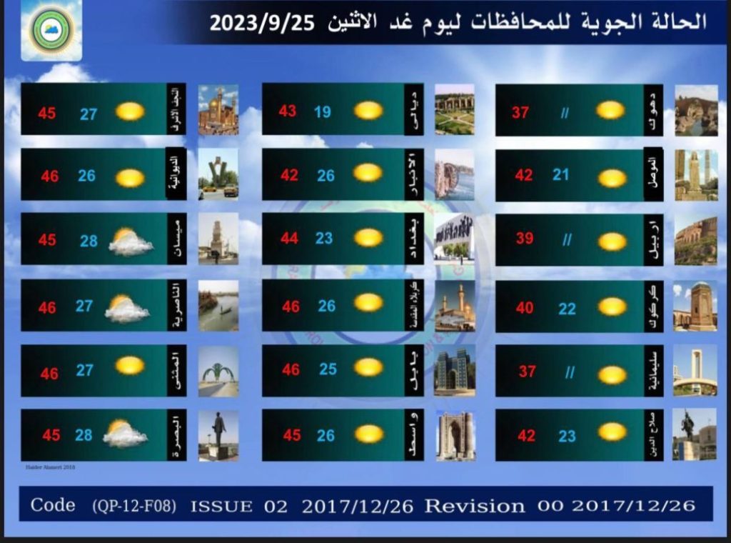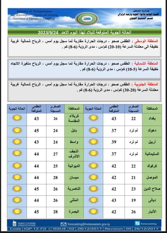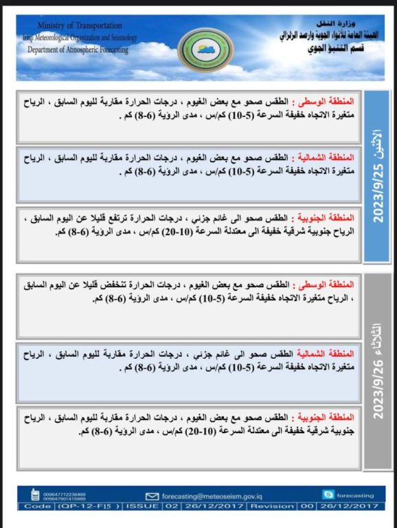 الانواء الجوية تعلن توقعات الطقس للايام الاربعة المقبلة
