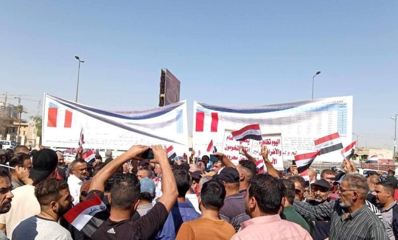 مئات الموظفين يتظاهرون امام مكتب رئيس الوزراء بشأن سلم الرواتب