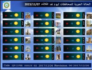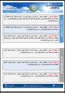 وحسب تقرير الهيئة، فأنه” لا أمطار حتى بداية الاسبوع المقبل، في حين تشهد درجات الحرارة ارتفاعًا بسيطًا بعد أن سجلت انخفاضا خلال اليومين الماضيين