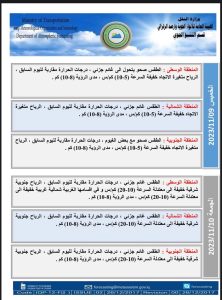 نشرت هيئة الأنواء الجوية، اليوم الإثنين ، توقعات حالة الطقس للأيام المقبلة، فيما أظهرت جداولها ارتفاعًا بدرجات الحرارة اليوم وللأيام الثلاثة المقبلة.