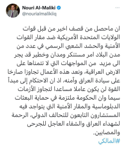 الرئيسية/اخبـار العراق/المالكي يصف قصف مقار القوات الأمنية والحشد الشعبي ب”الخطير” اخبـار العراق المالكي يصف قصف مقار القوات الأمنية والحشد الشعبي ب”الخطير” 2023-11-22 406 2023-11-22 406 شاركها فيسبوك X لينكدإن Tumblr بينتيريست Reddit VKontakte Odnoklassniki Pocket مشاركة عبر البريد طباعة