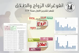 أعلن مجلس القضاء الأعلى، اليوم الأحد، إحصائية رسمية بحالات الزواج والطلاق خلال شهر تشرين الأول الماضي في عموم العراق.