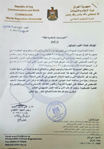 ووفقاً للوثيقة حصلت “وطن نيوز “، على نسخة منها أنه ” استناداً للصلاحيات المخولة لنا في تنظيم قطاعات الإعلام والاتصالات وتكنولوجيا المعلومات في جمهورية العراق بموجب الأمر (65) لسنة 2004 النافذ، وبناء على توجيه رئيس مجلس الوزراء محمد شياع السوداني المؤسسات الرسمية كافة للاحتفاء باليوم الدولي للتضامن مع الشعب الفلسطيني اليوم الأربعاء الموافق للـ (29) من شهر تشرين الثاني لسنة 2023 ، تزامنا مع قرار الجمعية العامة للأمم المتحدة ( القرار) 32 / 40 ب) لسنة “1977.
