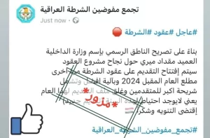 وأرفقت الوزارة، صورة لمنشور مزيف تضمن افتتاح التقديم على عقود الشرطة مرة أخرى مطلع العام المقبل 2024 .