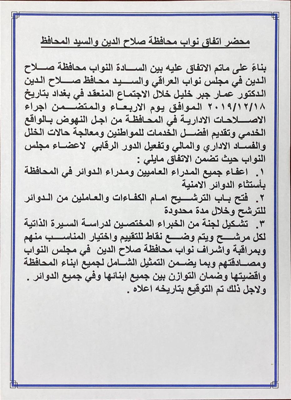 الرئيسية/اخبـار العراق/بالوثيقة.. اعفاء جميع المدراء العامين في صلاح الدين وفتح باب الترشيح لـ”الكفاءات” اخبـار العراق أخر الأخبار بالوثيقة.. اعفاء جميع المدراء العامين في صلاح الدين وفتح باب الترشيح لـ”الكفاءات” 2019-12-18 699 2019-12-18 699 شاركها فيسبوك X لينكدإن Tumblr بينتيريست Reddit VKontakte Odnoklassniki Pocket مشاركة عبر البريد طباعة