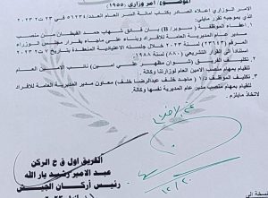 وقال المصدر في حديث لـ”وطن نيوز”، ان “وزير الدفاع ثابت العباسي، امر بسحب يد الأمين العام لوزارة الدفاع جبار الحيدري من مهامه”.