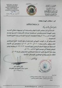 أعلنت هيئة الحج والعمرة ببيان رسمي ،اليوم السبت، المواطنين ممن ظهرت اسماءهم بقرعة الحج للاعوام (2020-2021-2022) لمراجعة الهيئة لغرض تسديد المبالغ لمدة اقصاها ليوم السبت القادم.