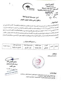 وبحسب وثيقة صادرة عن الوزارة تلقتها “وطن نيوز”، “نرافق لكم نسخة من اعمام وزارة الصحة / الدائرة الإدارية والمالية والقانونية / القسم القانوني ذي العدد ٩٣٦٨٤ في ٢٠٢٣/١٢/٤ ومرافقة كتاب الأمانة العامة لمجلس الوزراء ذي العدد (م خان) ٥٥١٥٩) في ۲۰۲۳/۱۱/۱۳ المتضمن تخصيص قطع أراضي سكنية للملاكات الطلبية ممن لديهم تماس مباشر مع مصابي فايروس كورونا لاتخاذ ما يلزم وتزويدنا بأسماء المشمولين بالقرار لغرض توحيدها وإجابة دوائر البلدية المودعة لديها طلبات التخصيص الأراضي سابقاً وفق الجدول ادناه”.