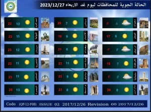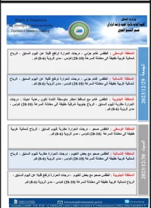 أعلنت هيئة الأنواء الجوية والرصد الزلزالي، اليوم الثلاثاء، حالة الطقس في العراق للأيام الأربعة المقبلة، فيما توقعت أمطاراً وعواصف رعدية وتقلبات في درجات الحرارة.