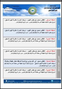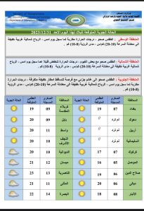 أعلنت هيئة الأنواء الجوية، اليوم الأحد ، حالة الطقس في العراق للأسبوع الأول من العام 2024، فيما توقعت هطول زخات مطر، وانخفاض في درجات الحرارة.