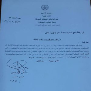وثيقة.. الرافدين يلغي عمولة السحب النقدي للمنافذ ويعتمد الدفع الإلكتروني