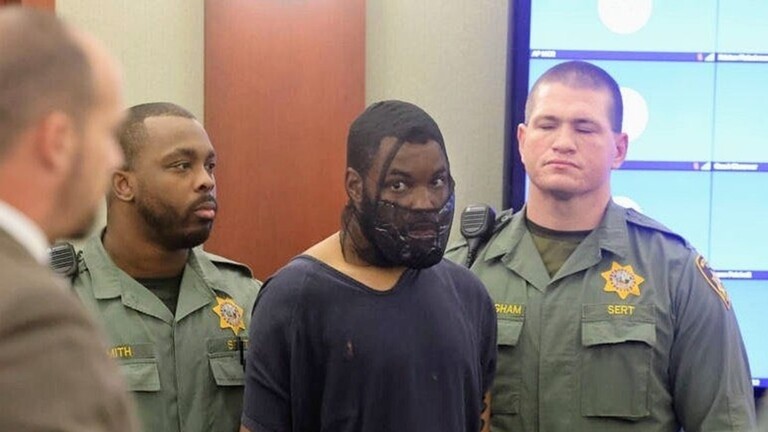 دخل رجل أمريكي إلى قاعة المحكمة في نيفادا، مكبلا بالأغلال، فيما وضعت القفازات حول يده والقناع لف وجهه، بعد أن كان انقض على القاضية في المحكمة في وقت سابق من يناير الحالي.
