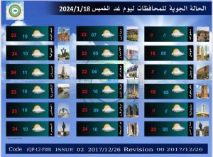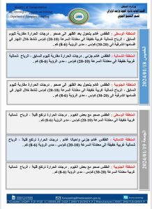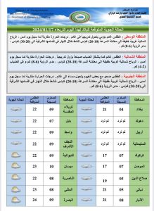 اعلنت هيئة الانواء الجوية، اليوم الأربعاء ، حالة الطقس في البلاد، فيما توقعت ارتفاعاً بدرجات الحرارة وامطاراً غزيرة ستشهدها البلاد خلال الأيام المقبلة.