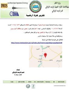 تسجيل هزة أرضية بقوة (3.2) درجات في مخمور بمحافظة نينوى وتم الشعور بها .