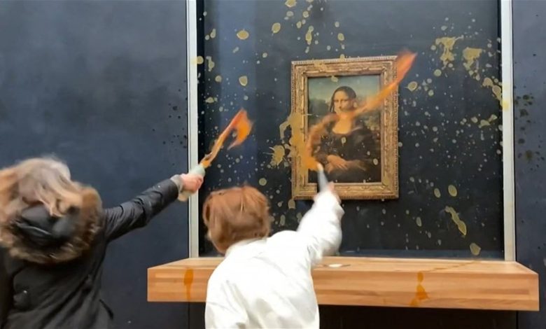 قامت ناشطتان في مجال البيئة، اليوم الأحد، بإلقاء الحساء على لوحة الموناليزا في متحف اللوفر في باريس.