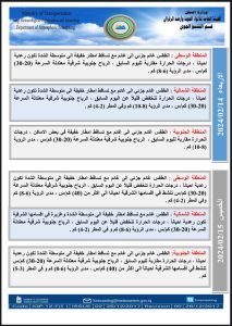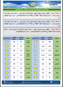 أعلنت هيئة الانواء الجوية، اليوم الثلاثاء ، حالة الطقس المتوقعة في البلاد، فيما اشارت الى هطول امطار رعدية مع انخفاض بدرجات الحرارة خلال الأيام المقبلة.