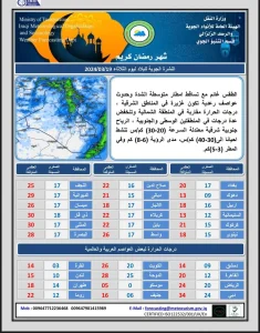 أعلنت هيئة الأنواء الجوية والرصد الزلزالي، اليوم الثلاثاء، حالة الطقس في العراق للأيام الأربعة المقبلة، فيما توقعت أمطاراً متواصلة وعواصف رعدية وتذبذباً في درجات الحرارة.