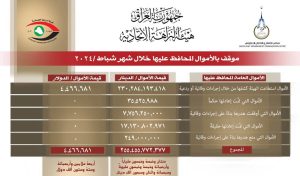 وقالت الهيئة في بيان تلقته “وطن نيوز” ان “مجموع الأموال المحافظ عليها في شهر شباط الماضي بلغت أكثر من 255 مليار دينار وأكثر من أربعة ملايين دولار.