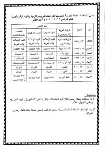 وفيما يلي جداول الامتحانات النهائية للمراحل المنتهية :-