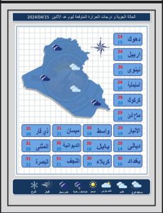 أعلنت هيئة الانواء الجوية، اليوم الاحد ، حالة الطقس المتوقعة في البلاد خلال الأيام المقبلة، فيما اشارت الى ارتفاع بدرجات الحرارة مع فرص لهطول امطار رعدية.