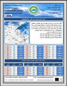 أعلنت هيئة الأنواء الجوية، اليوم الاثنين، عن تفاصيل حالة الطقس في البلاد للأيام المقبلة، فيما توقعت تساقطاً للأمطار وارتفاعاً في درجات الحرارة.
