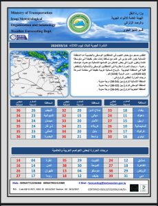 اعلنت هيئة الانواء الجوية، اليوم الثلاثاء ، حالة الطقس المتوقعة في البلاد خلال الايام المقبلة، فيما اشارت الى هطول زخات مطر وحدوث عواصف رعدية مع استقرار بدرجات الحرارة لتصل لاكثر من 30 مئوية في بعض المناطق.