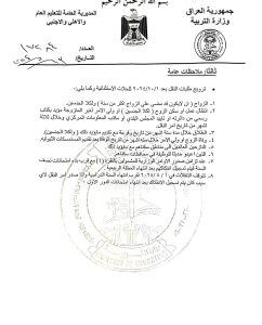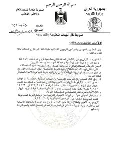 بالوثائق.. التربية تُصدر ضوابط نقل الهيئات التعليمية والتدريسية الى خارج المحافظة