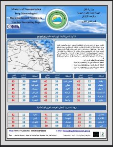 أعلنت هيئة الأنواء الجوية، اليوم الاحد ، حالة الطقس في البلاد للأيام المقبلة، فيما توقعت تذبذب درجات الحرارة مع حدوث عواصف ترابية وفرص لتساقط أمطار رعدية في المنطقة الشمالية.